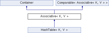 Public Member Functions inherited from Comparable< Associative< K, V > > | |