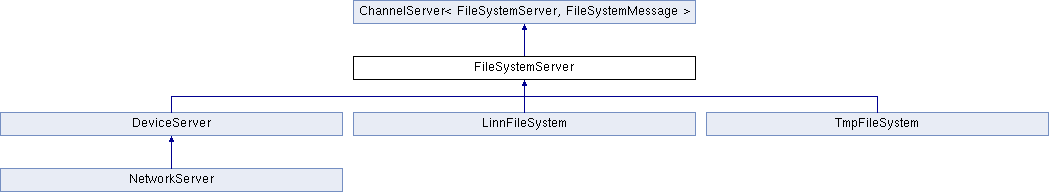 Public Member Functions inherited from ChannelServer< FileSystemServer, FileSystemMessage > | |