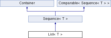 Public Member Functions inherited from Comparable< Sequence< T > > | |