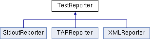 Implemented in XMLReporter, TAPReporter, and StdoutReporter.